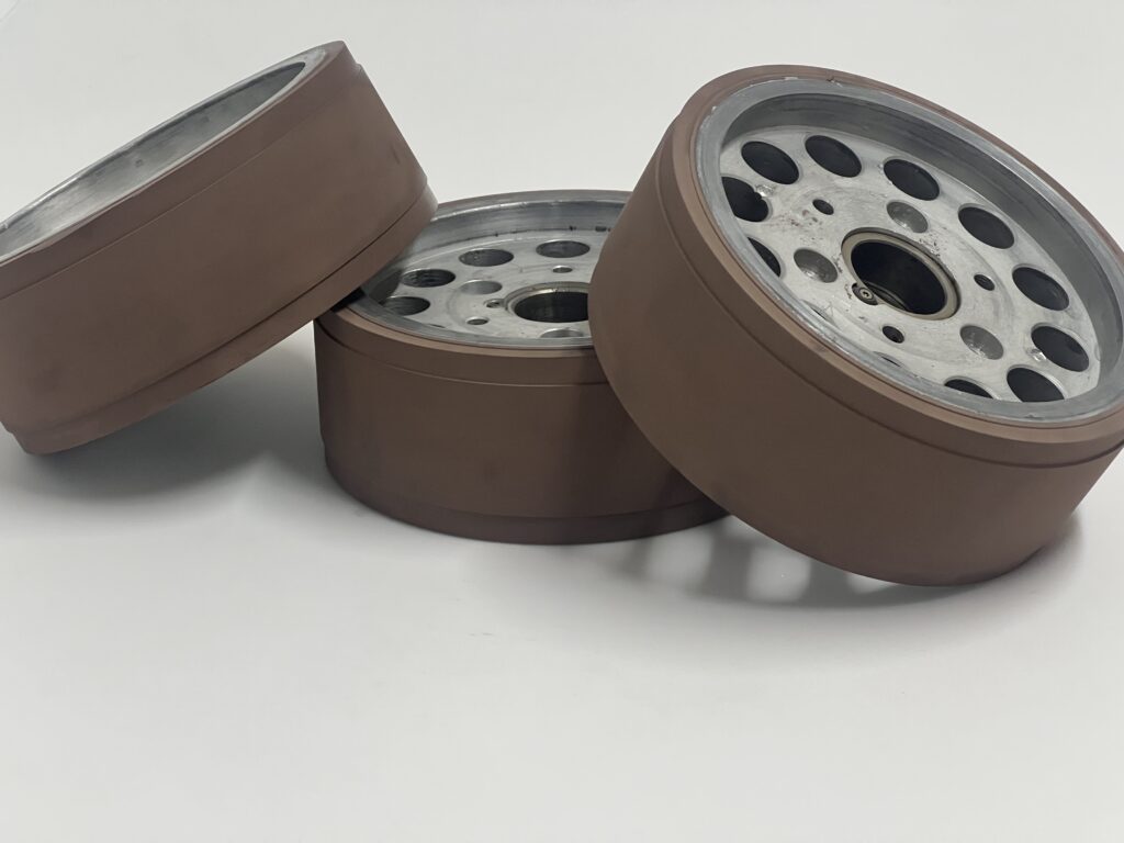 Silicone wheels are used in roll-on hot stamping and embossing processes to decorate flat or contoured parts with precision.